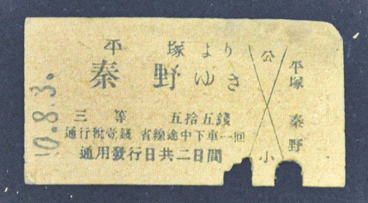 展示では、人々の暮らしを支えた鉄道と二宮町の発展の歴史についても紹介。明治39年に二宮と秦野を結ぶ湘南馬車鉄道が開通し、二宮が物資の中継地点として栄えた。軽便鉄道と東海道線の乗り継ぎ切符、関東大震災直後の時刻表なども紹介。5月15日(日)まで。