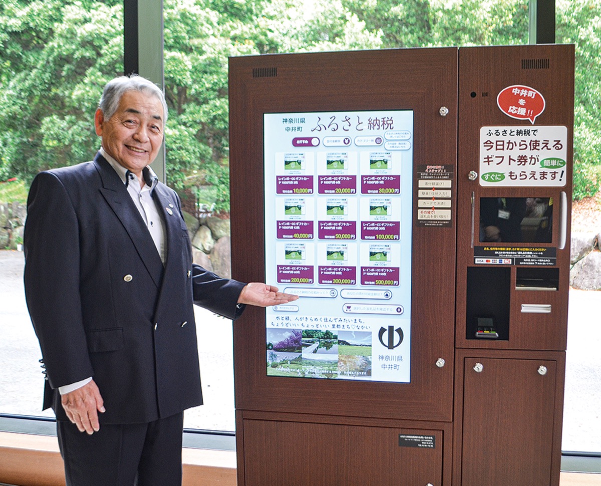 レインボーカントリー倶楽部が、自販機の設置場所を提供することに協力した。東名高速道路の秦野中井ICに近い同倶楽部は東京や横浜、川崎など県内外からアクセスしやすい集客施設。ふるさと納税をする人は大都市や都区部の住民が多く、ゴルフ客と重なるとみられ、便利な自販機によるふるさと納税の利用促進で町の収入アップが期待される。