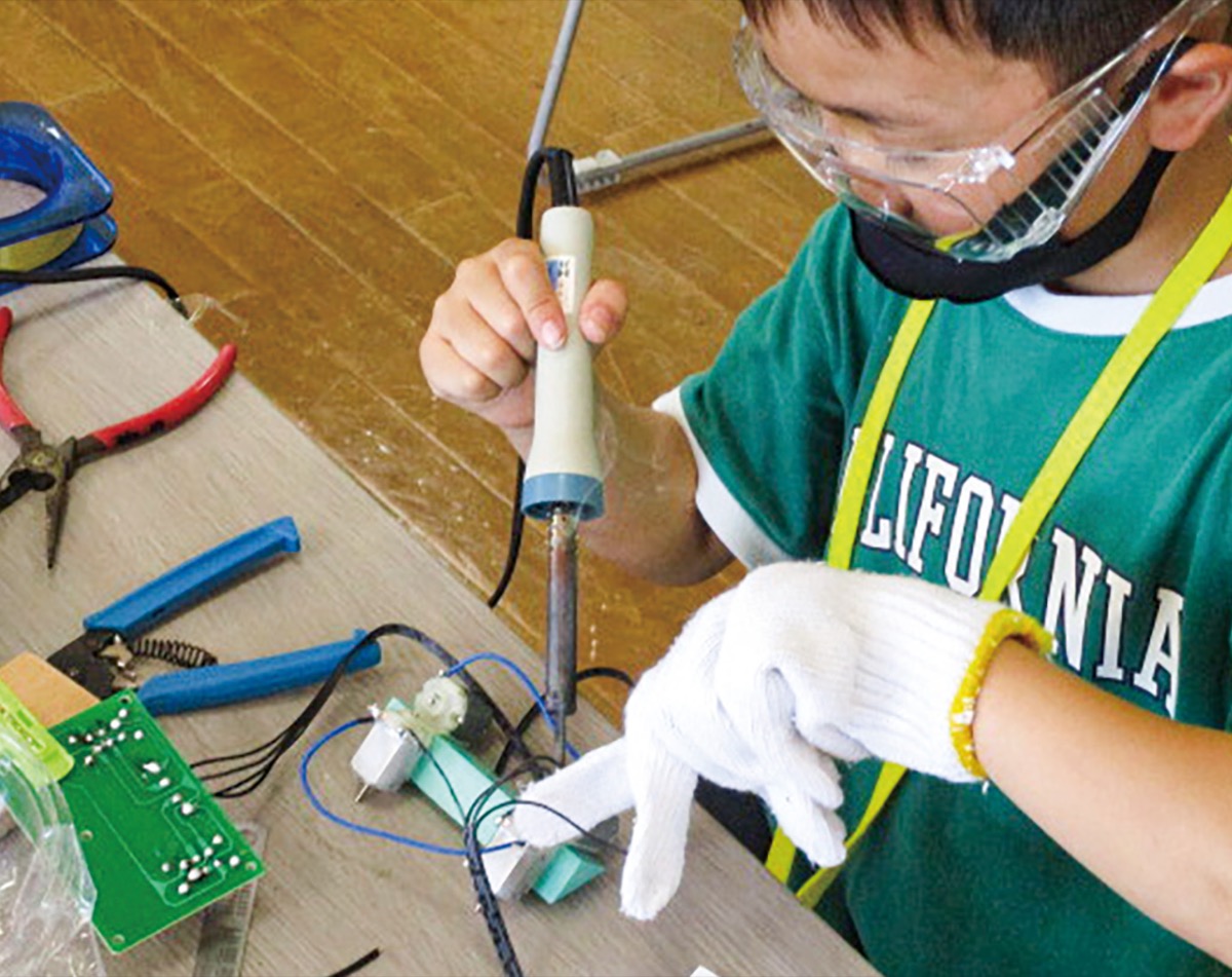 参加者らは午前中にコントローラ付きロボット「プチロボ」を製作。はんだ付けをして回路にスイッチや配線を取り付けた。初めて体験する参加者が多く、目の前で金属を溶かして組み立てる作業を見て驚く声があがる場面も。工作を通してものづくりの楽しさやロボットの仕組みを学んだ。