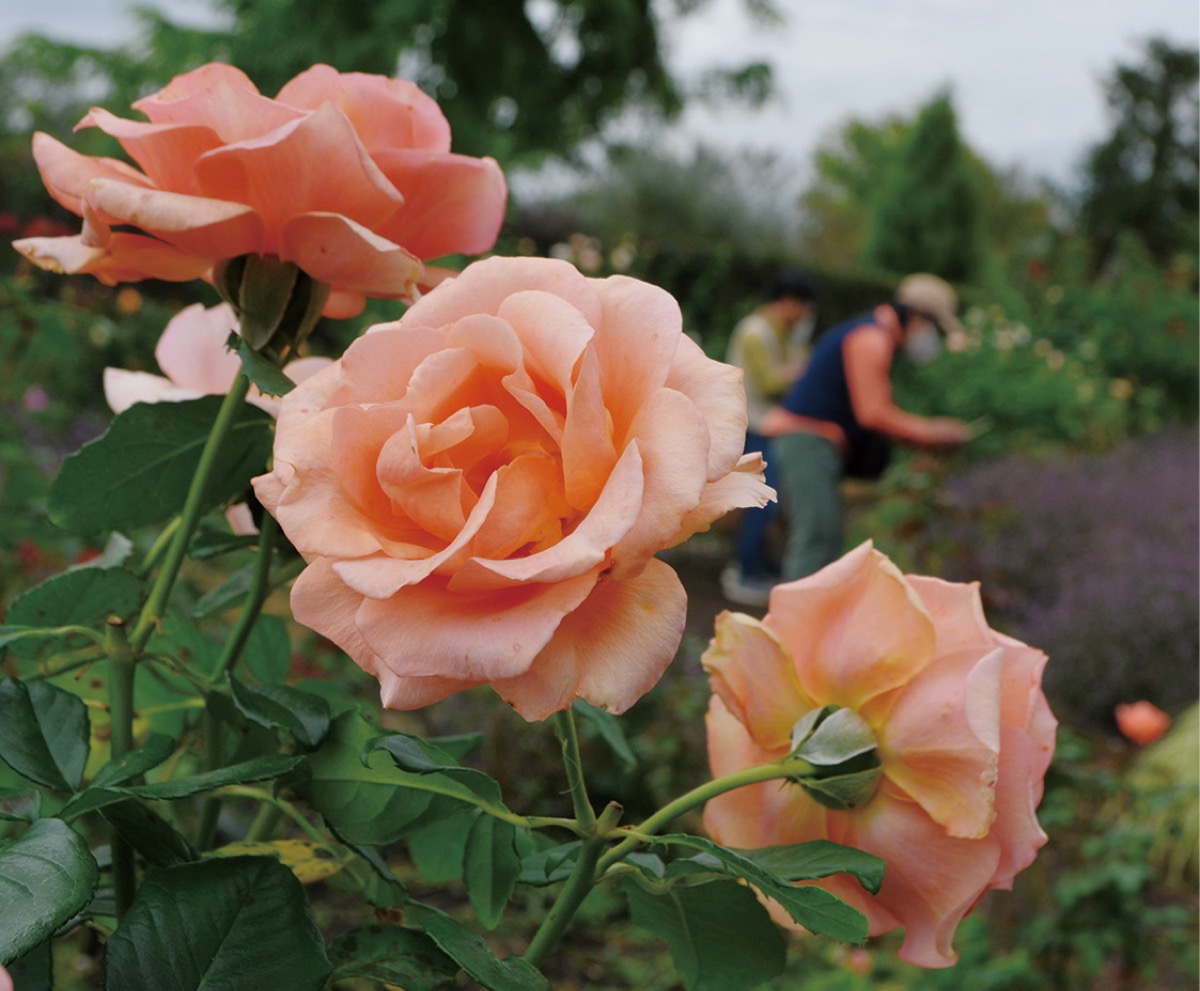 育種家が辿った品種改良の歴史に沿ってバラを観賞できるのが同園の特徴。モダンローズ、オールドローズなどエリアに分かれており、バラ本来の色や香りを楽しめる。