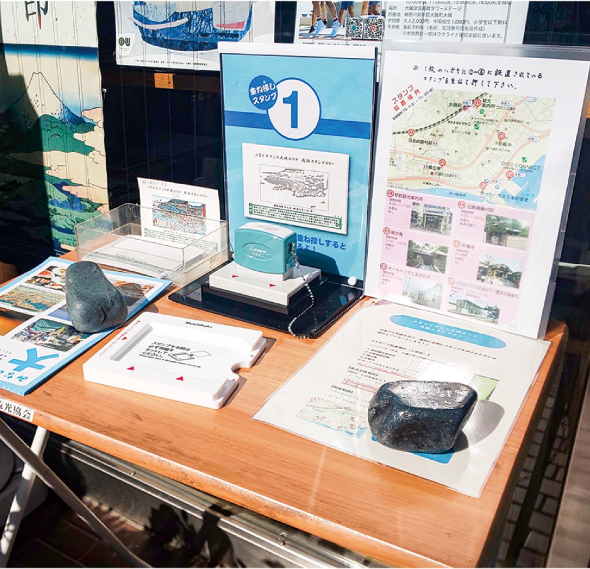 みなとオアシス大磯エリアの5カ所に設置されているスタンプを、設置場所で配布している専用の台紙に重ねて押していき、すべてのスタンプを押し終えると1枚のイラストが完成するというユニークな仕組み。設置場所は、大磯駅前観光案内所、旧島崎藤村邸、鴫立庵、妙輪寺、ポートハウスてるがさきで、各施設の開館日・開館時間内のみ押印可能。大磯港賑わい交流施設OISO CONNECTでプレゼントと交換できる(景品が無くなり次第終了。水曜休館)。問い合わせは大磯町産業観光課【電話】0463・61・5719へ。