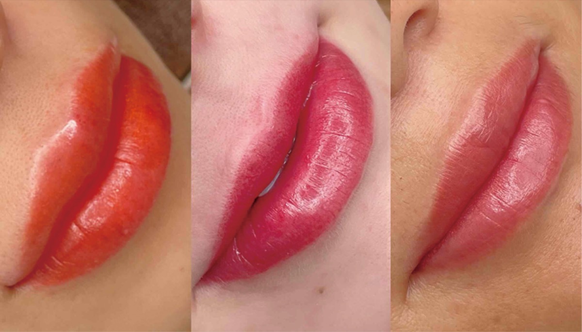 眉毛は黄金比を基に、1人1人の顔の骨格に合わせてデザイン。注目の唇のアートメイクでは色合いを足し、まるで薄付きのリップをしているような仕上がりにしてくれる。マスクに口紅がつくことがなくなり、食事でもとれないのが特徴だ。