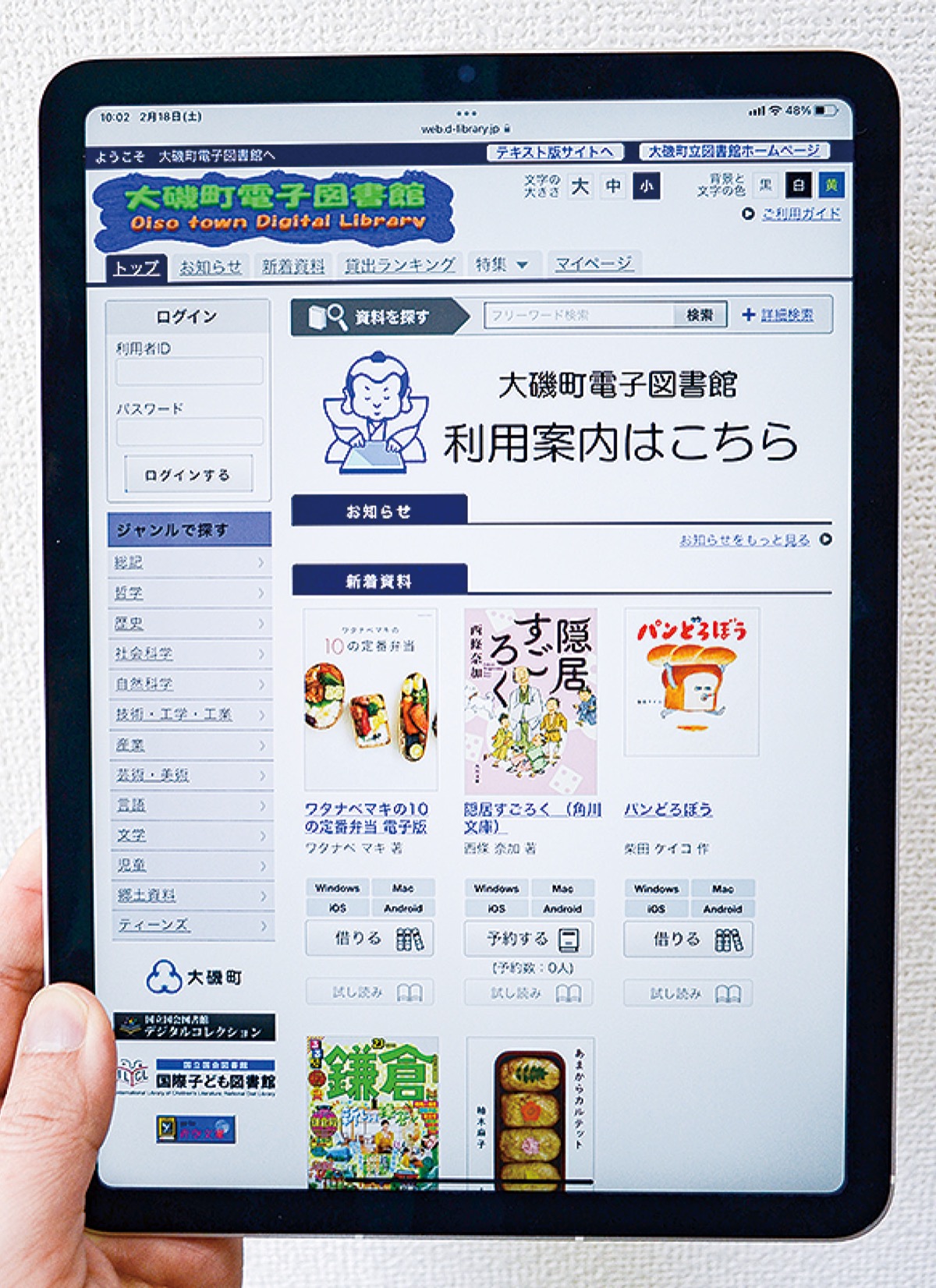 電子図書館の利用には、大磯町立図書館の利用券が必要。問い合わせは同館【電話】0463・61・3002へ。