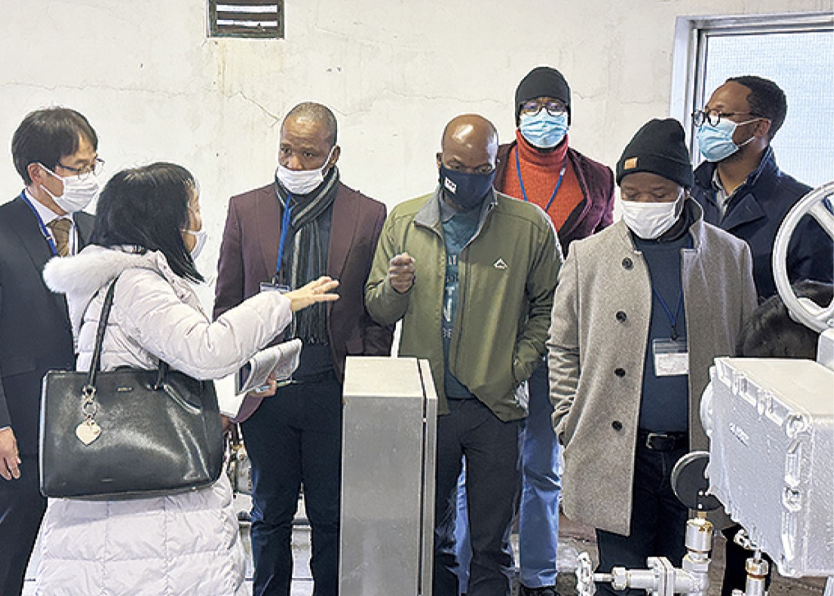 水道事業の運営効率化の参考にしようと、2月15日に南アフリカ共和国の水衛生省や主要水道事業体らの一行が中井町を視察に訪れた。