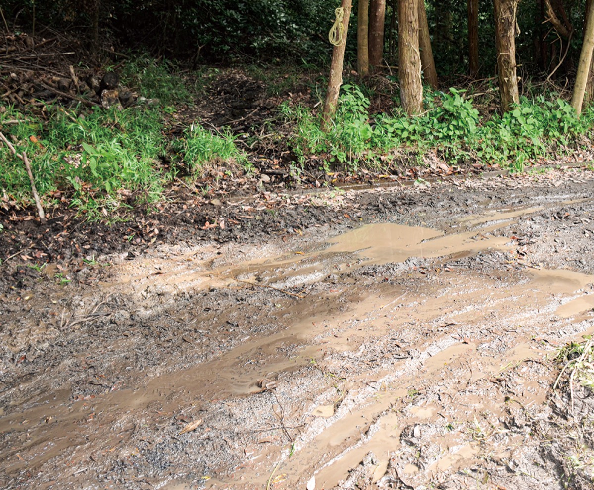 今回の工事場所では川や地下水の水が道路に流れ、道がぬかるんだりすることが課題となっていた。
