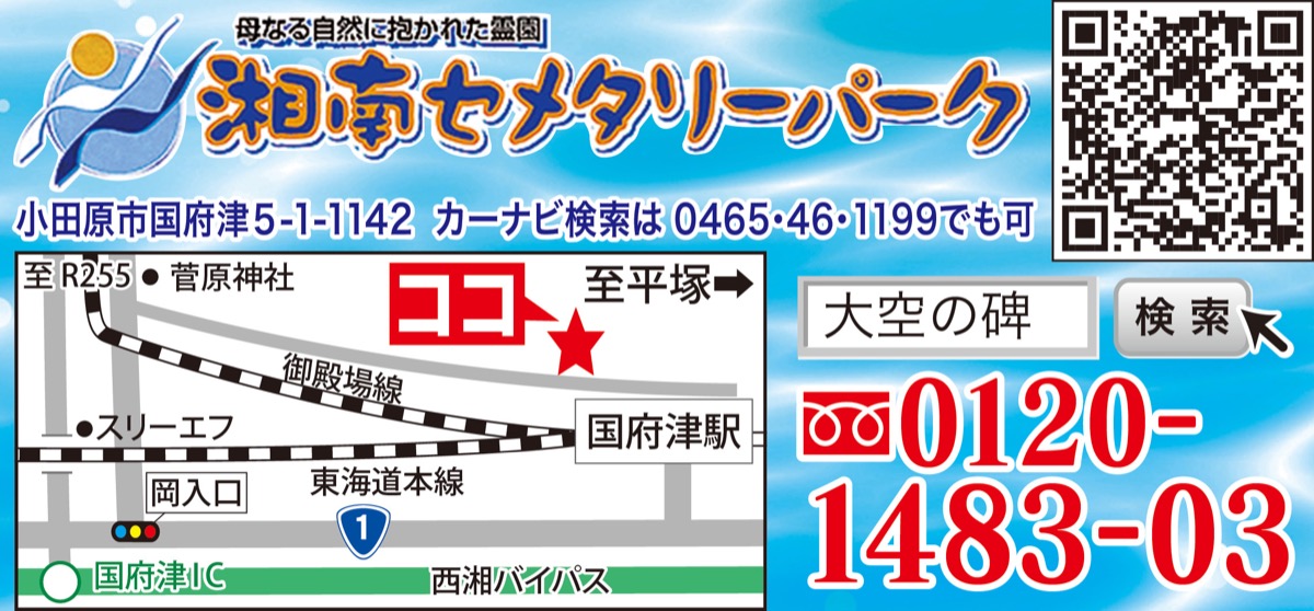 小田原市国府津「湘南セメタリーパーク」にある永代供養墓『海を望む丘 大空の碑』は、1年間骨壺に安置され、その後に合祀されるが、安置期間の延長にも応じてくれる。価格は諸費用込み、管理料なしで18万円(宗教・宗派、国籍を問わず)。