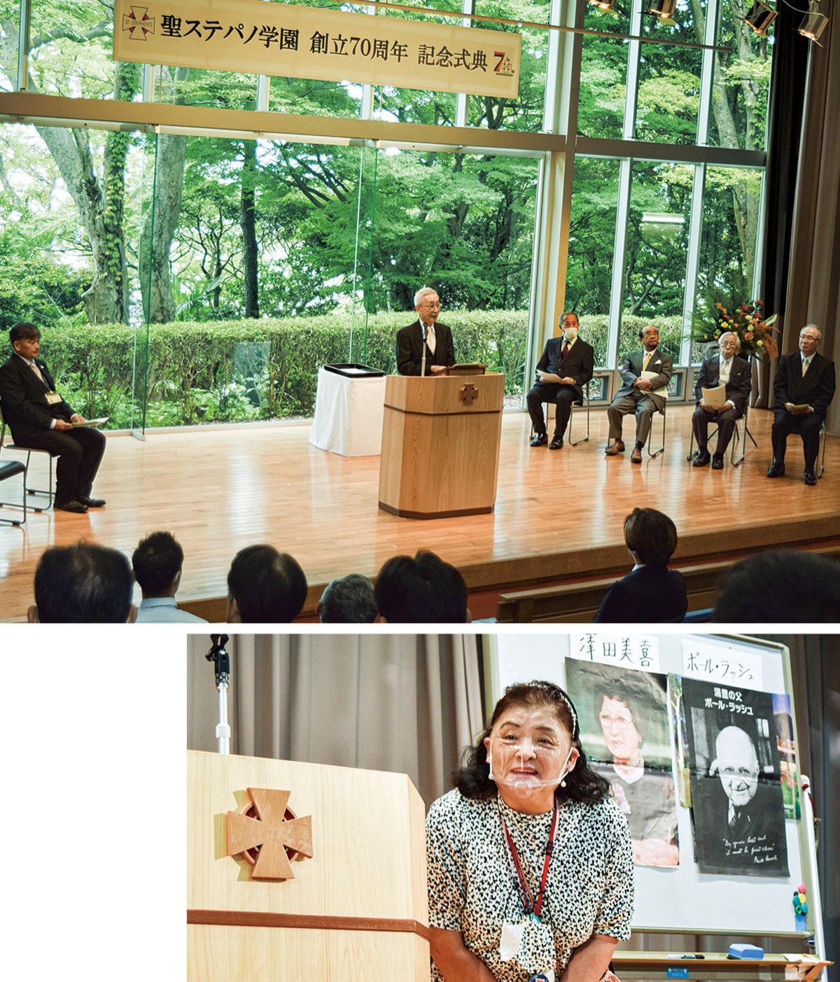 22日の記念式典では、同学園のホールや校舎などの教育施設の整備に尽力した前理事長・学園長の小川正夫さんが講演。「敗戦が生んだ最大の社会問題を、美喜さんは一手に引き受け奔走した。今でこそ偉業ですが、当時は妨害の圧力もあった。時代が変わり世の中が変化しても、社会的に弱い立場、支えが必要な子どもたちに対して、愛を持って接し続けた澤田美喜さんの理念を忘れないで」と話した。