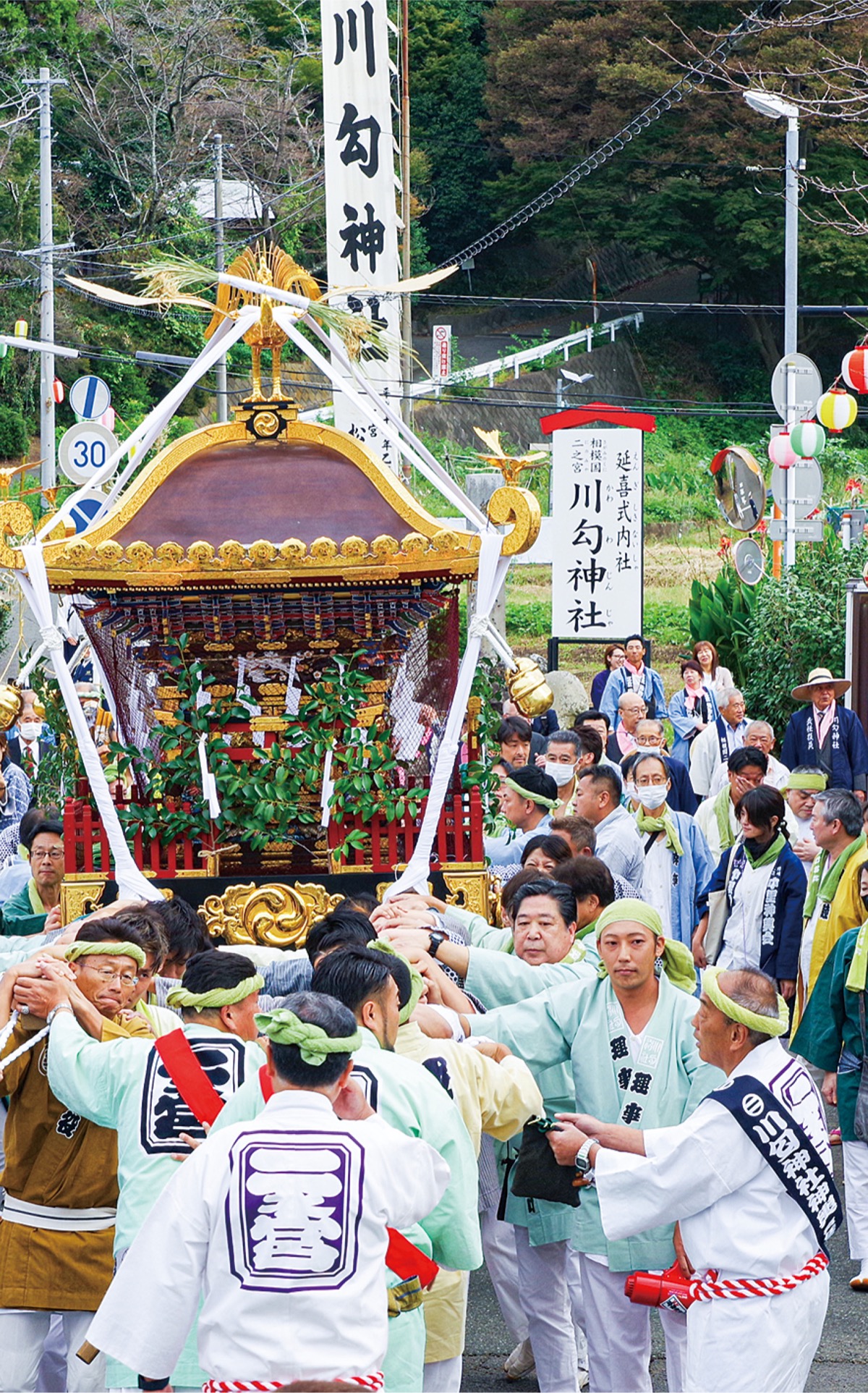 相模国二之宮川匂神社の例大祭=提供写真=が10月8日に行われた。昨年までコロナ禍で断念されていた大神輿による全町渡御や浜降りみそぎ祭も実施。