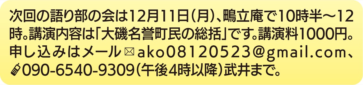 年内(今号入れてあと1回)で浅野総一郎を完結と、編集者に告げたものの、語り尽くせない事ばかり。大磯歴史語りとしては、大磯との関係をお話しします。