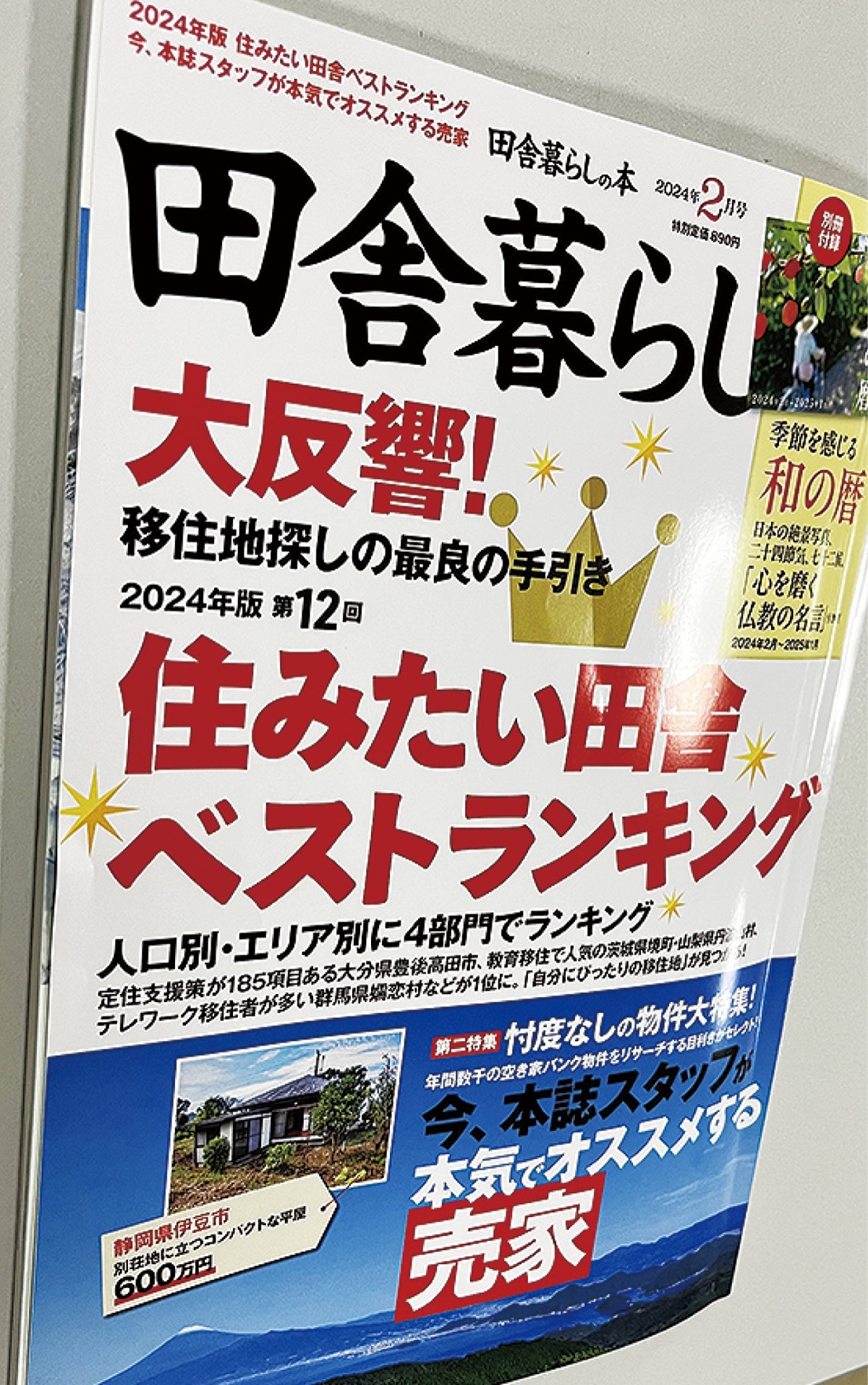 宝島社から出版されている雑誌『田舎暮らしの本』2月号の特集「第12回住みたい田舎ベストランキング」に二宮町がランクインしている。