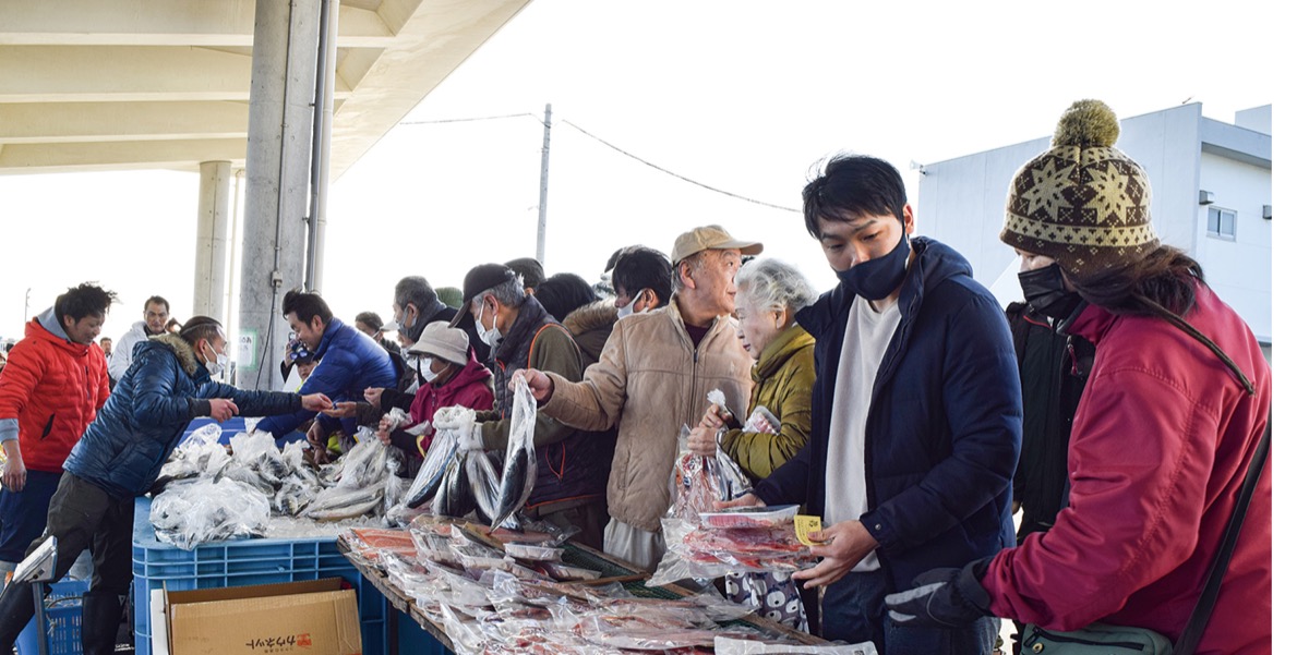 同日、2018年度を最後に中止していた「さかなの朝市」も復活。定置網で獲れた新鮮な魚を求める人々でにぎわった。