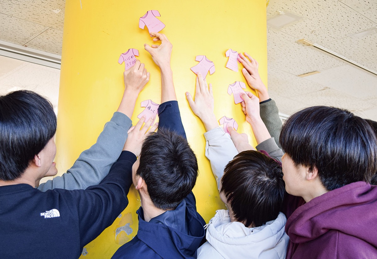 同校の生徒指導主任で、ピンクシャツデーを担当する石倉光博教諭は、「自分以外の誰かが書いた内容を見ながら貼ることで、『いじめは許されないんだ』という意識を高めてほしい。いじめが起こらない環境を作ること、いじめの未然防止が大きな目的です」と話していた。