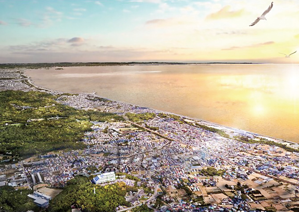 白を基調とした新病院は、自然光をふんだんに取り入れる開放的なデザイン。傾斜のある立地を生かしたエントランスのほか、地域住民らが集えるホール、大磯の海と松を見ながら食事ができる食堂などの設置を予定している。