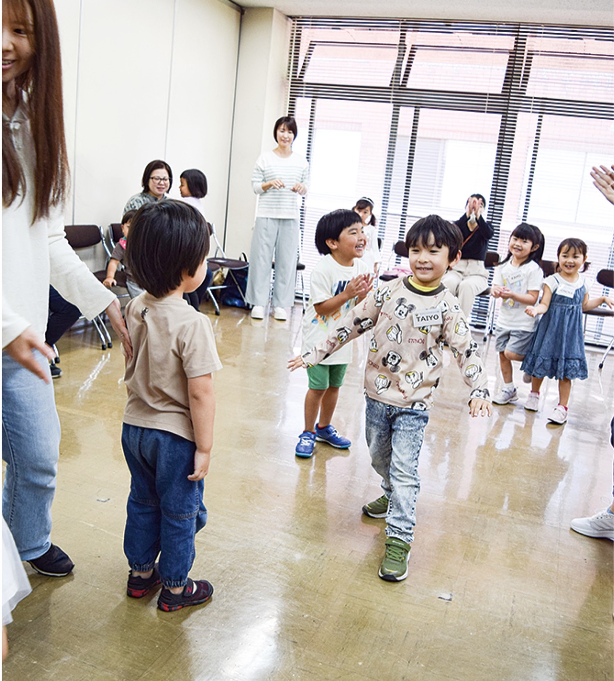 農村環境改善センターで実施された幼児クラスでは、10組の親子が参加。英語で授業が進む中、子どもたちは臆することなく講師の「Howare you?」の呼びかけに「good」「okay」と元気よく答えていた。