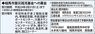 相馬市の「震災孤児基金」への募金呼びかけ