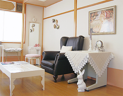 鴨宮駅北口の商店街の喧騒の中、扉を開けるとそこは異空間。アンティーク調の室内から、白い肌が印象的な女性が迎えてくれた。