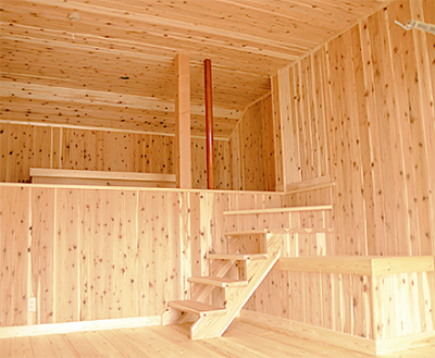 オーナーさんの趣向に合わせた空間作りが随所に光る。スキップフロアを巧みに使った『趣空間』は収納としてはもちろん、使い方は思いのままお客様しだい。床や壁には無垢の板と珪藻土をふんだんに使用し機能性と安全性に優れ、自然の温もりが溢れる。