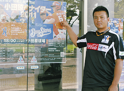 プロ野球のナイターが行われるのは初めての小田原球場。青木氏は「家族で雰囲気を楽しんで欲しい」と話し、自らは「がむしゃらに全力プレー」を約束してくれた。試合は午後6時(開門は午後4時)から。雨天の場合は翌28日(木)に順延。