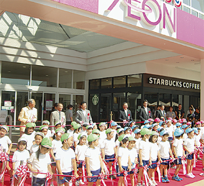 当日、店舗周辺には多くの買物客が詰めかけ、中には開店時間の1時間半前から並んだという人も。開店前の記念セレモニーでは、高橋生志雄秦野市副市長やイオンリテール(株)村井正平代表取締役社長、地元の幼稚園児らがテープカットを行った。