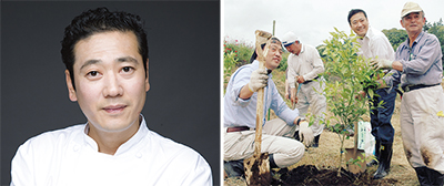 鎧塚さんは、恵比寿(東京)、東京ミッドタウンの人気スイーツ店「トシヨロイヅカ」のオーナーシェフで、日本を代表する著名パティシエ。小田原・一夜城に開店するのは、農園を併設したスイーツショップとレストラン、産地直売所だ。鎧塚氏が目指すのは地産地消、そして地元と一体となった新たなる第一次産業とのコラボレーションレストラン。今年4月に着工し、地元農業者の協力を得て、農園で柑橘類などの栽培を進めてきた。自身も現地を訪れ開墾や定植などの作業を行っている。