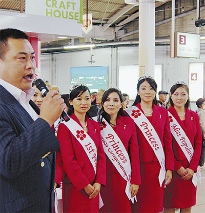 5人は知性と美貌で選ばれた「日系のお手本」的存在で、今回は同会議所とともに来日。メンバーの一人・エリザベス・タマナハさんは「穏やかで平和な観光地。温泉にトライしたい」と笑顔を見せていた。