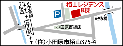 小田急線「栢山駅」から徒歩2分の茶色のビルがココ。1階には「極麺小次郎」が入っている。駐車場50台。