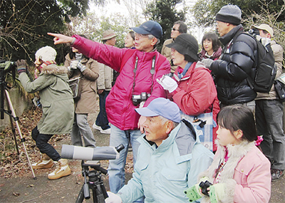家族で参加した小川大輝君(小学1年)は「メジロが見えた」と話し、平倉香里ちゃん(6歳)は「ムクドリが可愛かった」と笑顔を見せた。渡邉さんは「冬はきれいな色の鳥が見られる。子どもたちが興味を持ってくれて私も楽しかった」と振り返った。