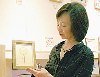 描いたのは、市内柳新田在住で、かくれ文字絵作家の小林真澄さん。文字で「絵」を描くことの楽しさに魅せられ、小学校の教員をする傍ら、約20年前から、漢字やひらがなで、描く対象そのものを表現することに取り組んできた。