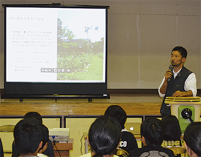 これはパーマカルチャーガーデンデザイナーの四井真治さんを講師に迎え、野菜や花などを育てながら、鳥や虫など自然界の生き物と調和した、庭のような畑を作ろうという試み。今月9日には、山梨県北杜市で「食べられる庭」づくりを実践しながら暮らす、四井さん宅の様子をスライド上映しながら、庭造りについての説明があった。