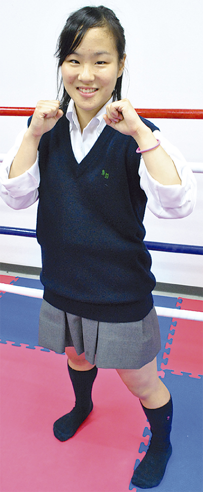 湯山さんは相洋高校(中高一貫コース)に通う3年生。中学3年の3月からキックボクシングを始め、わずか2年半でプロの資格を取得した。身長144cmと小柄。制服姿からはキックボクサーとしてリングに上がる姿を想像することができない。