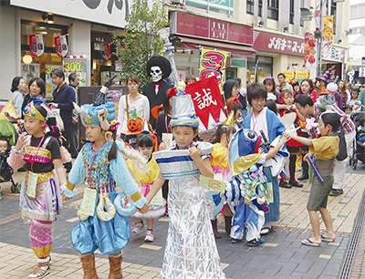 おだわら竹の花商店会(磯崎和彦会長)のハロウィンが10月27日に開催された。第8回目を数えるこのイベントでは今年も仮装パレードやコンテスト、スタンプラリーなどが行われ多くの参加者が訪れた。
