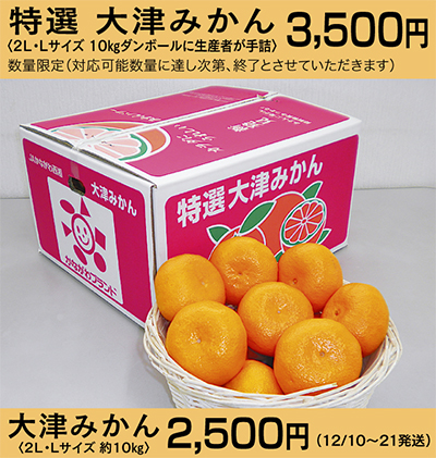 毎年人気を集めているのが「みかん」。収穫時期を迎えた「大津4号」は、県西地域で生まれ全国に人気が広がった品種。なかでも畑の管理と味の検査に合格したものは「特選大津みかん」と呼ばれ、収穫後は、選果機を通さず、手で一つ一つ丁寧に箱詰めされるこだわりの逸品なのです。