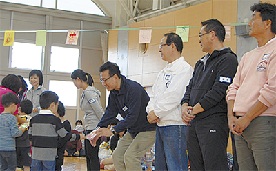 市の障害児通園施設「つくしんぼ教室」の運動会で、小田原中ロータリークラブ(井島誠行会長)のメンバー6人が準備や案内役など裏方として協力した=写真。井島会長は「クラブの活動として、汗をかいて手伝うことの大切さを痛感した。親や職員の苦労が解った」と感想を語った。同クラブでは、今後も物心両面で奉仕活動を継続したい、としている。同教室ではこれまで職員と社会福祉協議会のメンバーで運動会の準備などを行っていた。