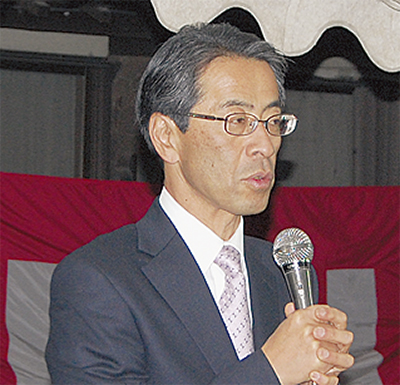 支持者と一緒に自宅前のテントでテレビの速報を見守っていた露木順一氏。午後9時45分頃マイクの前に立ち「地域から日本を良くするためには県西部から、と県知事選挙の後、ミニ集会などを重ねてきたが、自民復活の大きな風の中で立ちふさがれてしまった。働く場所が与えられないと果たすことができない。お応えできなかったことを切にお詫びする」と頭を下げた。