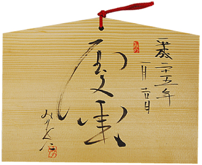 今回も、みのもんたさんや三遊亭円楽さん、伊東四朗さん、松坂慶子さんなどお馴染みの絵馬に加え、沢口靖子さん、風間トオルさんなど初めての出展も多い。地域の画家や書家からも力作が寄せられている。