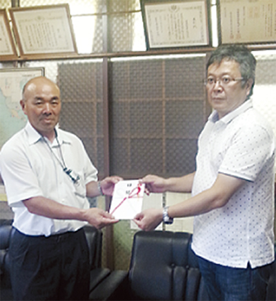 (株)美濃屋吉兵衛商店(鈴木吉兵衛社長)は宮城県の気仙沼市唐桑地区復興支援協同体に3回目の寄付を行った。同社では2011年7月から、自社製品1個につき1円を義援金として積み立てる「1円キャンペーン」を継続。今回の寄付は115万円で、代理として鈴木社長が代表を務めるFMおだわらの鈴木伸幸局長らが、7月10日に唐桑を訪れ目録を手渡した。なお3回の合計は298万円となる。