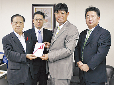 (株)ユニバーサル技研は10月8日、9月に開催したチャリティーゴルフコンペの収益金30万円を社会福祉協議会(酒匂守会長)に寄付した。