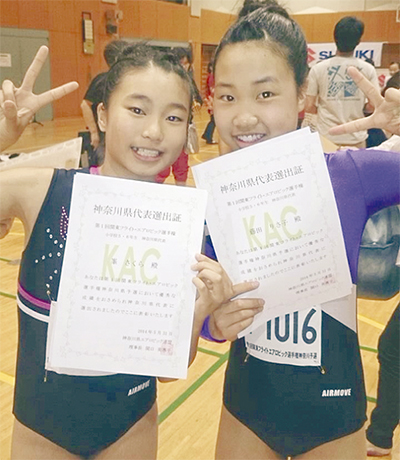 5月31日に横浜で行われた全日本エアロビック選手権神奈川大会で峯さくらさん(富士見小6年)と藤田りさ子さん(豊川小6年)が、13人の県代表に初めて選ばれた。両選手は12月28日(日)に都内で開催される関東フライト・エアロビック選手権に出場する。