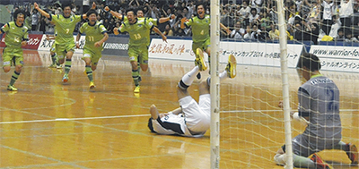 ▽ベルマーレが初戦を迎えた2日目。勝てば土日の参戦が確約されるが、負ければ即終了。地元開催に加え、大会開催のいきさつを知るベルマーレの選手たちにとっても「絶対に負けられない」試合。いつも以上に大きなプレッシャーは、0対3の劣勢に立たされてから開き直るエネルギーとなる。1000人を超えるサポーターの諦めない声援が大逆転劇を生んだ。ネットワークのメンバーも驚喜乱舞、試合後の「勝利のダンス」を選手の後ろで一緒になって舞った。ベルマーレを中心に2市8町が「フットサルのまち」として一体になった瞬間だった。