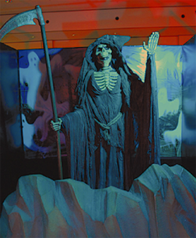 ゲートを一歩くぐるとそこは暗闇の世界に。一昨年の夏、小田原を恐怖に包み込んだホラーハウスが、パワーアップして帰ってきた。新たなお化けも仲間入りし、息を潜めて来場者を待ちわびている。