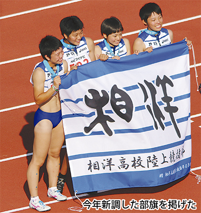 決勝レース。山梨という馴染みのトラックで名前がコールされると、一際大きな歓声が起こった。「相洋を知っている人が多くて心強かった」。1走の大石沙南さんが勢いよくスタートすると、2年生コンビの杉山菫さんにバトンをつなぐ。3走・越智めぐみさん(3年)がコーナーを回った時「1位で来る」と確信したアンカー堀池香穂主将(3年)が順位をキープ。誰よりも早くテープを切った。