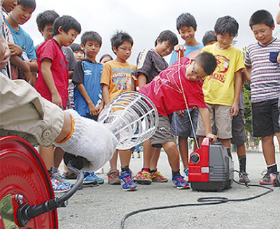 初めて発電機に触れた山本宙永君(6年)は「難しかったけど、ためになった」と話し、川口会長は「有事に少しでも今回の経験が活かせれば」と、約1200人が参加した訓練を振返った。