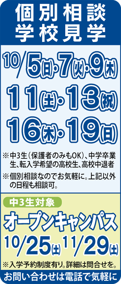 新しい仲間も多い10月は高校生活をリスタートしやすい時期。相談は気軽に。