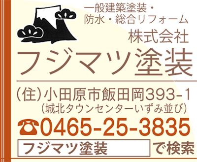 小田原市飯田岡で創業21年の(株)フジマツ塗装は「完全自社施工」がモットーの塗装屋さん。仕上がりの良し悪しが分かりづらい、価格が不透明など、不安が多い家周りのメンテナンスに、親身に対応してくれる。一級塗装技能士の川上剛社長からは「耐火・耐久性のアップなど、マイホームを長持ちさせるためにも、外壁は新築以降8〜10年ごとを目安に、塗り替えをお勧めします」とアドバイス。