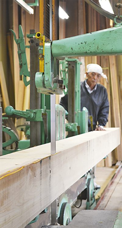 幼少時から製材機に乗って遊んでいたという大山さん。大学で商業を学び、卒業後製材の道へ。「注文通りの寸法に仕上げることはもちろん、相手の価値観やニーズを読み取ることが大切」と心得を話った。