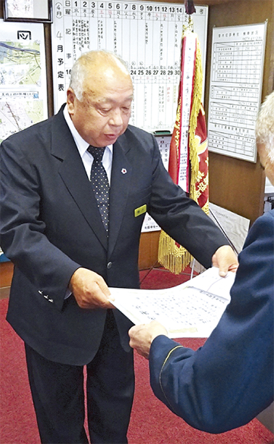 太陽自動車(株)(市内浜町)のタクシー乗務員・露木五佳(いつよし)さん(64)が久野の広域農道で行方不明者を発見、保護して自宅まで送り届け、松田警察署から感謝状が贈られた。
