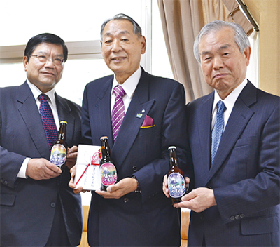 寄付を受けた山口昇士町長は、近年中国からの観光客が増えていることに言及。片野社長は「ビールのラベルに描かれた富士山のイラストは、橋本社長がラフスケッチし、弊社のデザイナーが完成させた」というエピソードを話し、富士山好きの中国人観光客に人気だと明かした。2社は今後も寄付を続けていく。