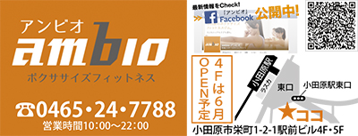 小田原出身のボクシング元東洋太平洋チャンピオン・松田直樹さんが総合プロデュースするボクササイズフィットネス「ambio」が明日5月3日(日)、小田原駅東口駅前ビル5Fにオープンする。