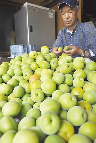 上曽我で梅農家を営む星野和夫さん(68)=写真=は、先日まで十郎の収穫・出荷に追われ、現在は南高の収穫が始まったところ。一昨年ごろから同梅林の周辺では花や枝先が菌に侵され、激しく枯れる灰星病と思われる被害が見られているが、今のところ大きな打撃を受けずに例年通り収穫ができているという。JAかながわ西湘によると6月16日時点の入荷量は小梅が1286kg、白加賀が92トンで白加賀は昨年より微減。
