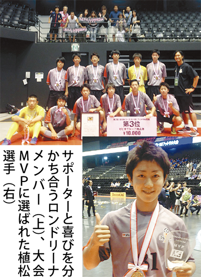 大会は全国から16チームが参加。8チームで争われた決勝トーナメントでロンドリーナは、優勝した岡山県作陽高校に5対6で惜敗。優勝は逃したが、3位決定戦で大勝。3位に入賞した。3位決定戦で6得点の大活躍を見せた大井町出身の植松晃都(こうと)選手が大会MVPに選ばれた。ベルマーレの試合にも出場している植松選手は「得点王にはなれなかったが、MVPを受賞できてうれしい。もっともっと成長したいと強く思いました」と語った。